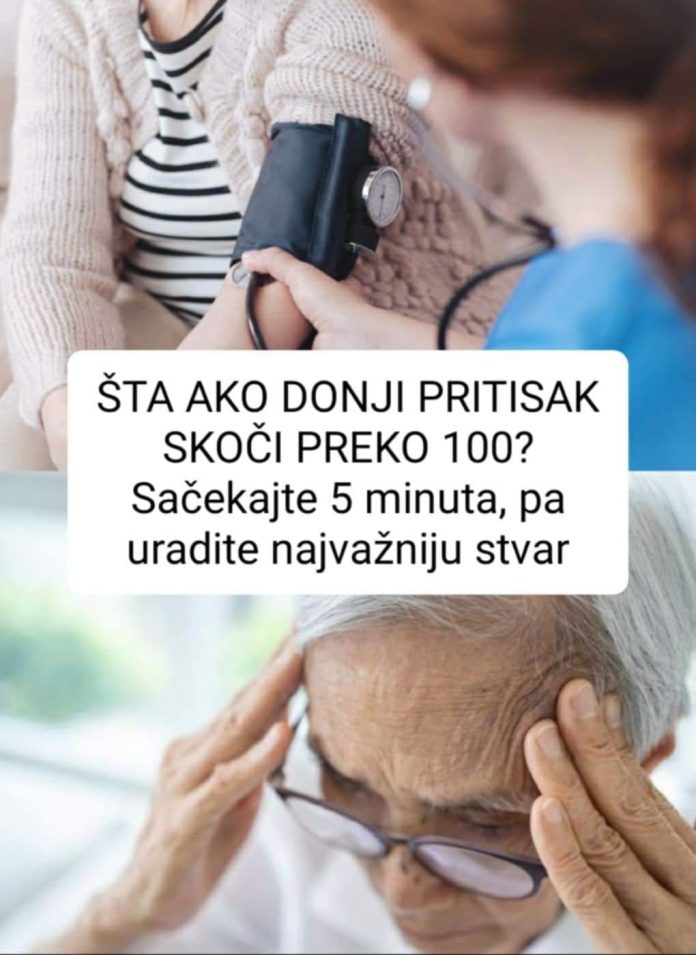 Visok krvni pritisak je ozbiljan zdravstveni problem koji može imati dugoročne posledice na vaše zdravlje.Ako vam se dogodi da vam donji pritisak pređe 100, važno je da ne paničite, već da odmah preduzmete odgovarajuće korake.