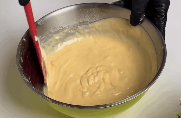 Smjesu prebacite u pripremljenu posudu za pečenje, pazeći da je vrh zaglađen špatulom prije nego što je stavite u pećnicu da se peče.