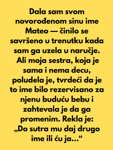 Rekla mi je: „Ako mu do sutra ne promeniš ime, prekidam svaki kontakt. Više me nećeš videti, i Mateo me neće upoznati. Nikada ga neću prihvatiti s tim imenom. Biraš ime umesto svoje sestre.“