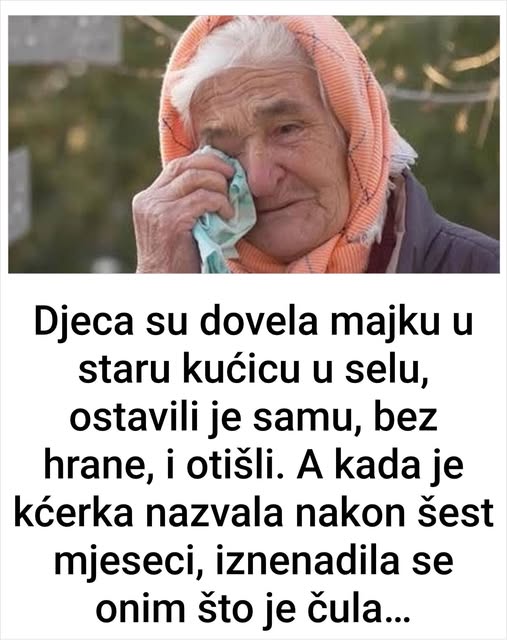 The post Djeca su dovela majku u staru kućicu u selu, ostavili je samu, bez hrane, i otišli. A kada je kćerka nazvala nakon šest mjeseci, iznenadila se onim što je čula… appeared first on Zdravlje priroda.