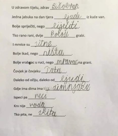 Magazin Dječak je trebao dovršiti poznate poslovice, učiteljica je morala slikati te legendarne odgovore Piše ❤ - 12.11.2025 FacebookTwitterPinterestWhatsApp Pa ovo je sjajno! LAJK.HR