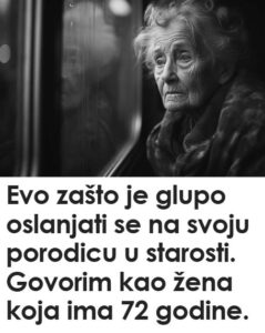 Vjerovala sam da će mi ono što sam ulagala u druge biti vraćeno. Da će starost biti nagrada, a ne kazna. Danas, sa 72 godine, govorim vam nešto što možda zvuči grubo, ali dolazi iz srca i iskustva: glupo je oslanjati se na svoju porodicu u starosti.