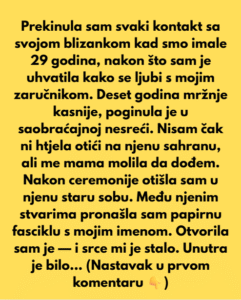 Nedavno je poginula u saobraćajnoj nesreći. Nisam ni htjela otići na njenu sahranu, ali mama je insistirala. Nakon toga sam otišla u njenu staru sobu. Dok sam pregledavala njene stvari, pronašla sam fasciklu s mojim imenom.