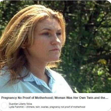 Otkriveno je da Lidija Ferčajld takođe ima ovo stanje. Ona je bila “genetska himera” – nosila je dva različita seta DNK. Zbog toga su testovi pokazali da deca nisu njena, jer su neki od njihovih genetskih materijala pripadali drugom organizmu. Na sreću, ovaj medicinski fenomen je omogućio Lidiji da dokaže svoju biološku povezanost s decom i slučaj je konačno odbačen.