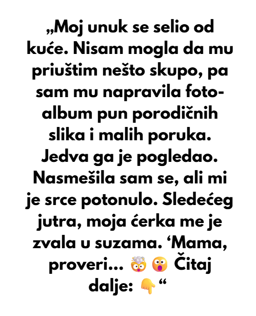 Otvorila sam telefon i videla objavu mog unuka — sliku albuma, otvorenog na prvoj strani. Napisao je: „Ove stranice sadrže svaki deo onoga što jesam. Moja baka mi je dala moju istoriju, moje srce, moj dom. Ovo ću nositi sa sobom gde god da idem.“
