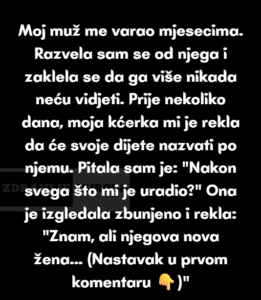 Pišem vam jer se osjećam potpuno slomljeno. Moj bivši muž me varao mjesecima, i bila sam toliko uništena da sam se razvela od njega i zaklela da ga više nikada neću vidjeti. Mislila sam da će moja kćerka, koja je sada odrasla, stati uz mene, ali sam se prevarila.