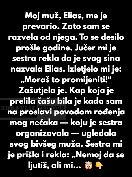 The post “Moja sestra je nazvala sina po mom bivšem mužu koji me prevario — a to nije ni najgori dio.” appeared first on Zdravlje priroda.