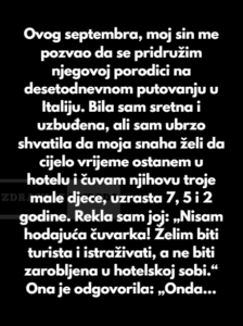 Te večeri, bez da sam ikome rekla, rezervisala sam mjesto na istom letu i sobu u istom hotelu. Željela sam im dati lekciju — pokazati da ne zavisim od njih i da mogu putovati sama, čak i ako su moji finansijski resursi ograničeni.