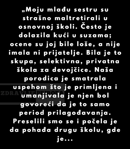 The post „Moju mlađu sestru su strašno maltretirali u osnovnoj školi.” appeared first on Zdravlje priroda.