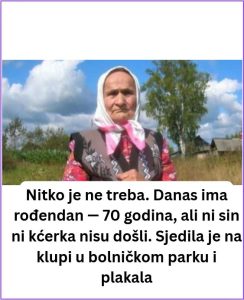 U ovoj priči se zapravo otkriva koliko ponekad zaboravnost i hladnoća mogu boljeti, čak i kada su srce i duša otvoreni za ljubav.Anna Petrovna bila je žena velikog srca, čije je življenje bilo posvećeno porodici. Njena ljubav i pažnja bile su neizmjerne, no upravo su je oni koje je najviše voljela napustili u njenim zlatnim godinama. Na njen sedamdeseti rođendan, Anna je sjedila u bolničkom parku, pod drvećem koje je šaptalo na vjetru, gdje je u tišini provela dan. Nije bilo radosnih čestitki, ni poziva, ni poklona – samo tišina, suze i prazna klupa. Očekivala je, barem, da će dobiti jedan telefonski poziv od svojih najbližih, ali nije bilo ni toga. Bila je sama.