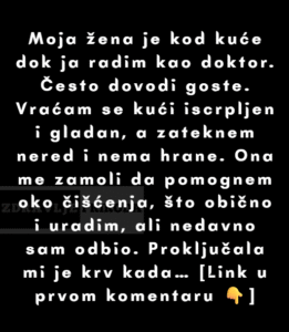 Ja (35M) radim kao doktor. Moja žena (33F) ostaje kod kuće. Život je užurban, naravno, ali u posljednje vrijeme me to polako izluđuje. Često dovodi prijatelje, a ja se vraćam kući nakon smjene od 12+ sati, gladan i iscrpljen, da bih zatekao kuću u neredu i bez hrane. Obično pomognem oko čišćenja jer ne želim da izgledam neodgovorno. Ali prije par dana jednostavno nisam mogao. Bio sam previše umoran, iskreno.
