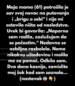 Moja mama (61) potrošila je sav svoj novac na putovanja i ličnu negu i ostavila me bez ikakvog nasledstva. Obično bi govorila: „Naporno sam radila za ovaj novac, zaslužujem da se počastim.“