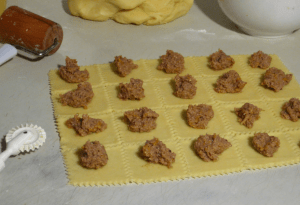 Pomiješajte sve sastojke i oblikujte tijesto, zatim ga ostavite u hladnjaku 30 minuta (ovaj korak nije obavezan). Za nadjev pomiješajte mljevene orahe, lješnjake ili bademe po želji sa željenom količinom domaće marmelade.