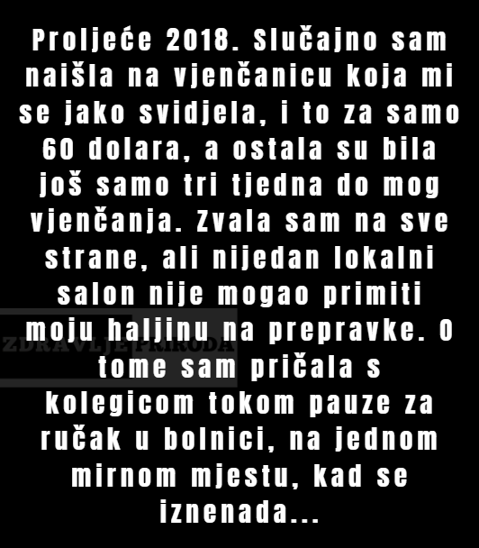 The post “Proljeće 2018. Slučajno sam naišla na vjenčanicu koja mi se jako svidjela…” appeared first on Zdravlje priroda.