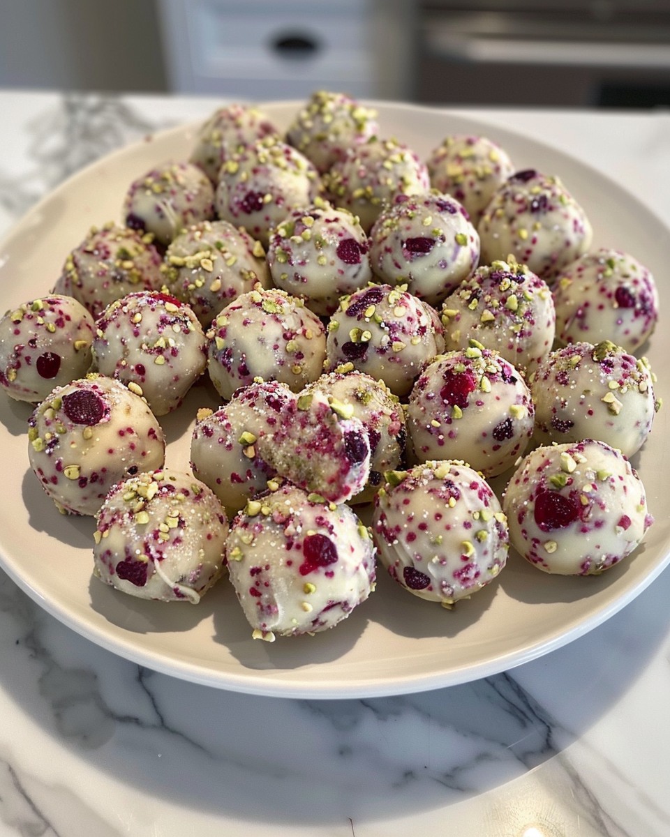 Kuglice od brusnica i pistacija predstavljaju prekrasnu slasticu koja skladno spaja slatkoću bijele čokolade s kiselošću suhih brusnica i zadovoljavajućom hrskavošću pistacija.