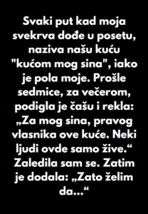 The post “Svaki put kad moja svekrva dođe u posetu, naziva našu kuću “kućom mog sina”, iako je pola moje…” appeared first on Zdravlje priroda.