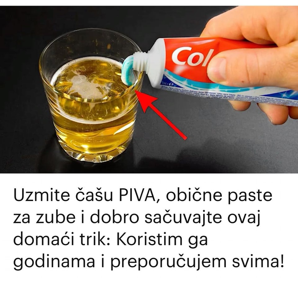 Naslovna Uzmite čašu PIVA, obične paste za zube i dobro sačuvajte 0vaj domaći trik: Koristimga godinama i preporučujem svima! Uzmite čašu PIVA, obične paste za zube i dobro sačuvajte 0vaj domaći trik: Koristimga godinama i preporučujem svima!